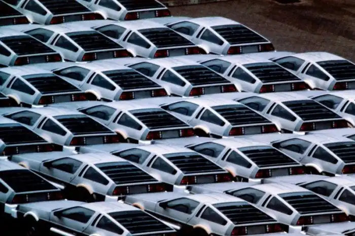 30. Автомобили DMC DeLorean на заводе DeLorean Motor перед экспортом в США. 1980-е