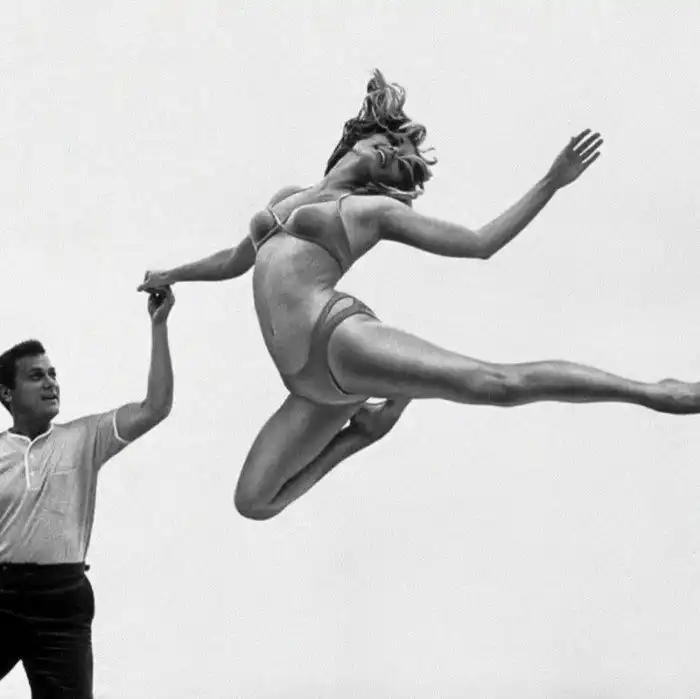 35. Тони Кёртис и грациозная Шэрон Тейт на съемках фильма "Не гони волну", 1967 год