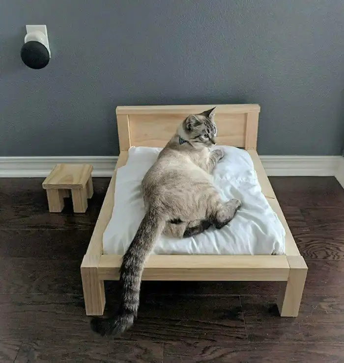 Теперь у этого красавчика есть собственная кровать с тумбочкой