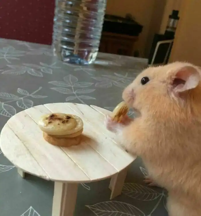 У этого хомячка есть столик, а хозяйка печет ему крохотные лепешки