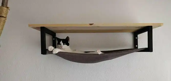 Гамак, подвешенный на высоте, — простой и милый способ выразить любовь к своему коту