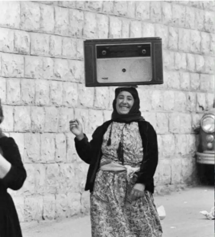 34. Женщина переносит радиоприёмник. Палестина , 1959 год