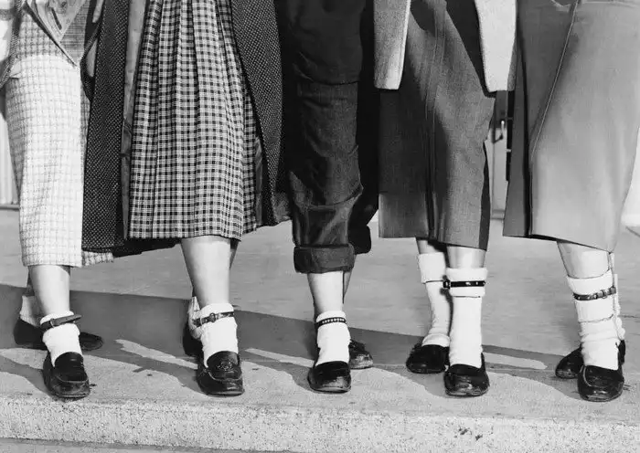 Девушки подростки с собачьими ошейниками на щиколотках. Они носили их справа, если у них был парень, и слева, если они были одиноки, 1953 год