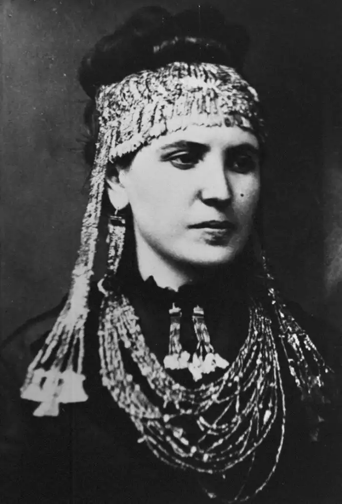 Софи Шлиман, жена археолога Генриха Шлимана, в драгоценностях Елены Троянской, 1876 год