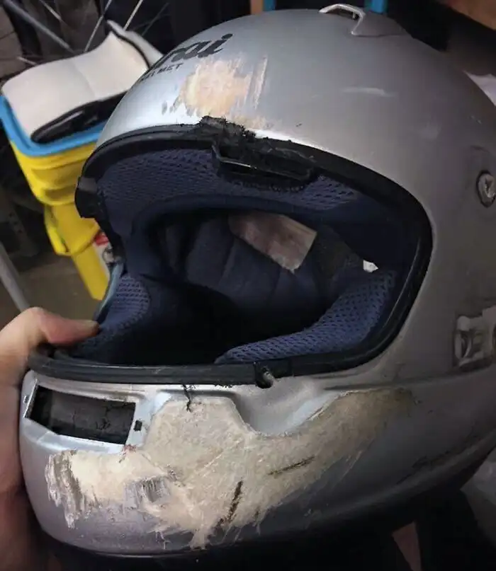 6. "Вот почему нужно носить полностью закрытый шлем. Моего друга сбил автомобиль, проехавший на красный цвет. Если бы не шлем, у парня не было бы нижней челюсти"