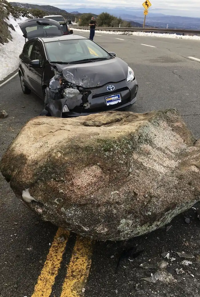 28. "Огромный валун упал на машину моих родственников в Калифорнии. Машину задело, но люди не пострадали"
