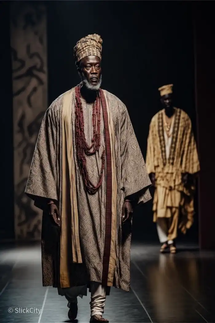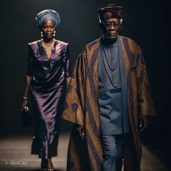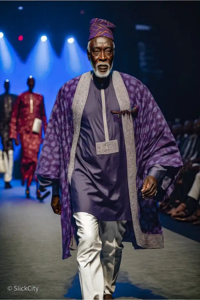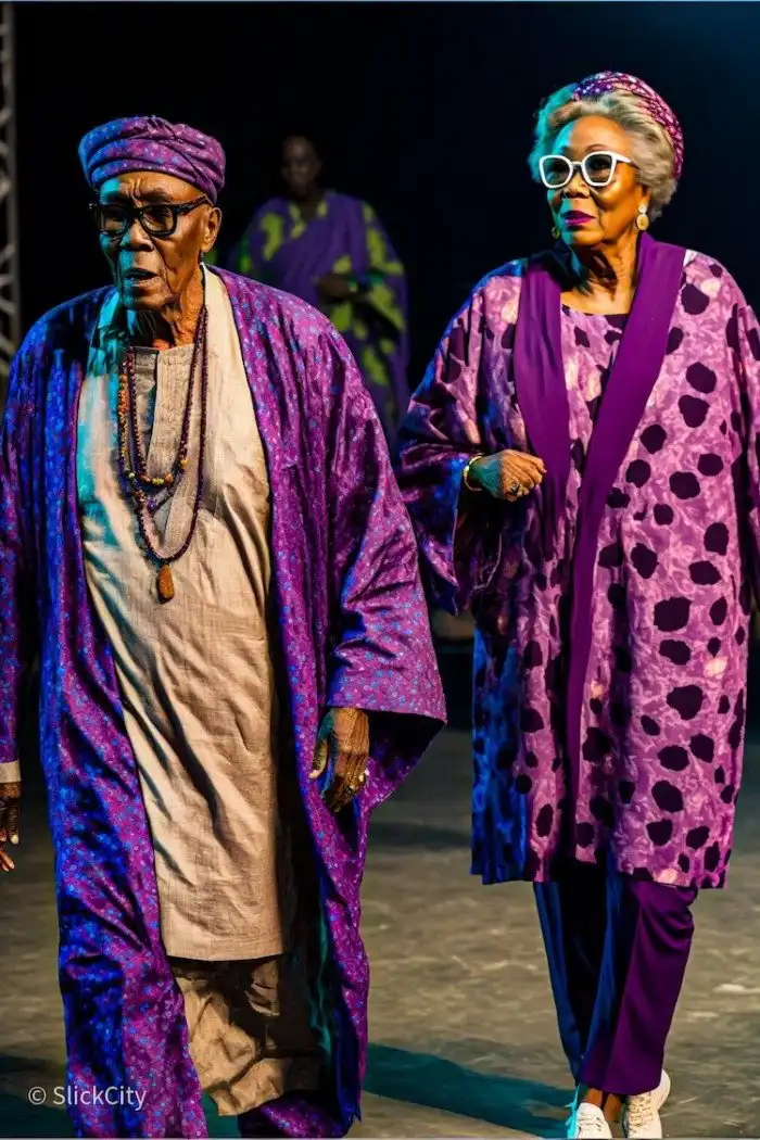 «Я увлекаюсь модой, и мне всегда нравилось экспериментировать, — объясняет Афегбуа. — Я хотел смешать традиционную африканскую нигерийскую моду с чем-то футуристическим, чем-то афро-футуристическим». Персонажи его серии «Показ мод для пожилых» одеты в наряды, сочетающие принты, узоры и роскошные материалы.