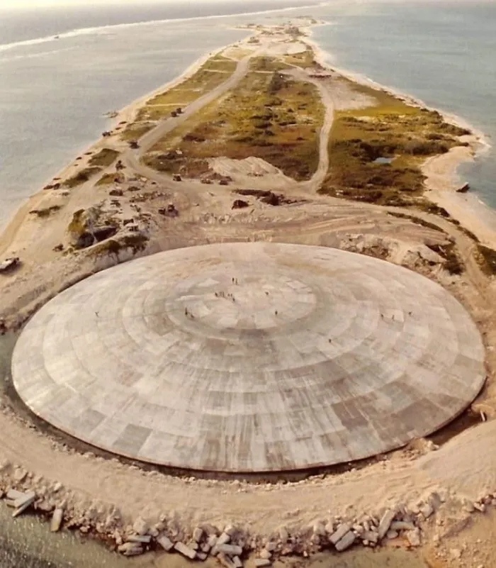 Купол Рунита. Бетонный саркофаг, содержащий 73000 кубических метров радиоактивных обломков от 68 ядерных взрывов и биологического оружия США, остается на Маршалловых островах в Тихом океане