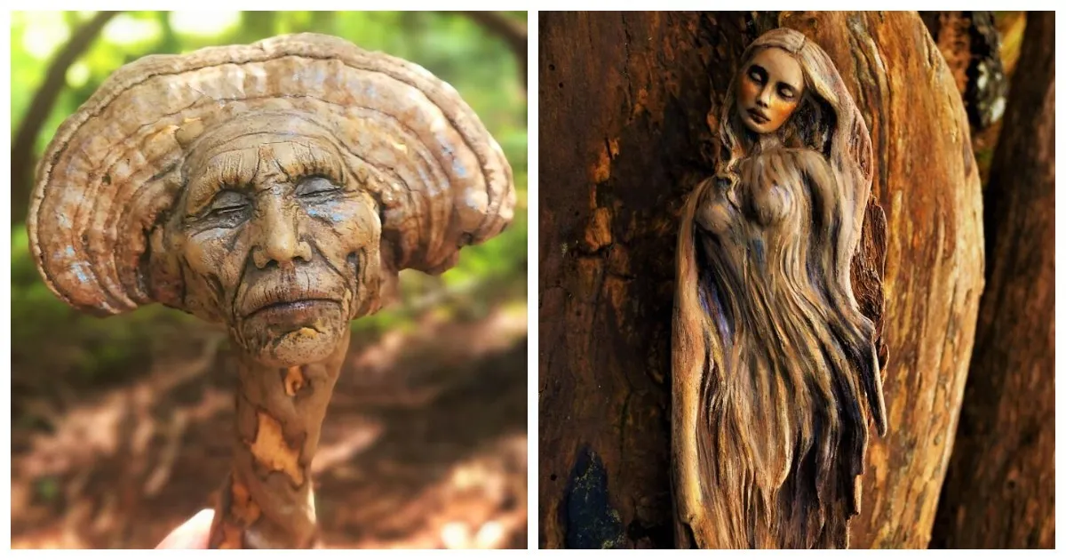 Художник делает невероятные скульптуры из коряги, ракушек и сушеных грибов