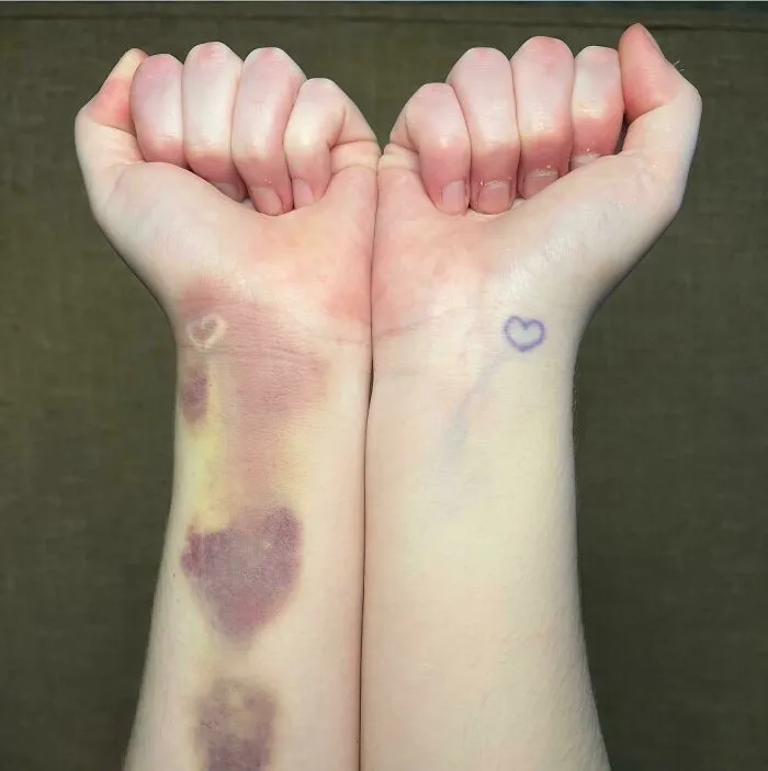 22. "Синяк раскрасил мою тату пчелки"