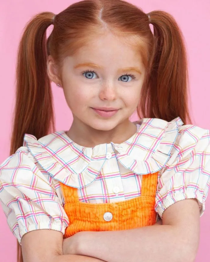 Кинли Хейман - 6-летняя рыжая девочка, которая обрела популярность благодаря своей кукольной внешности и гимнастическим талантам.