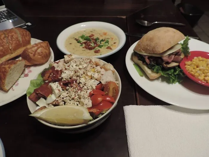 14. «Сэндвич с ростбифом справа. Мы с мужем не сдерживали себя, когда готовили праздничный ужин на двоих»