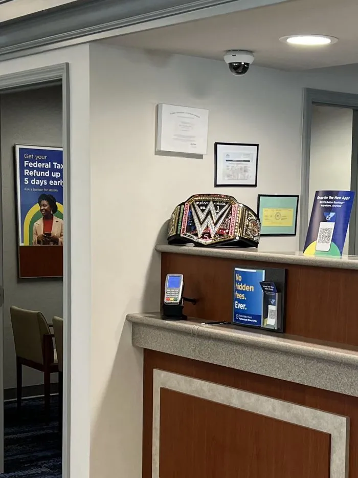 27. "Ничего такого, просто чемпионский пояс по реслингу в офисе банка"