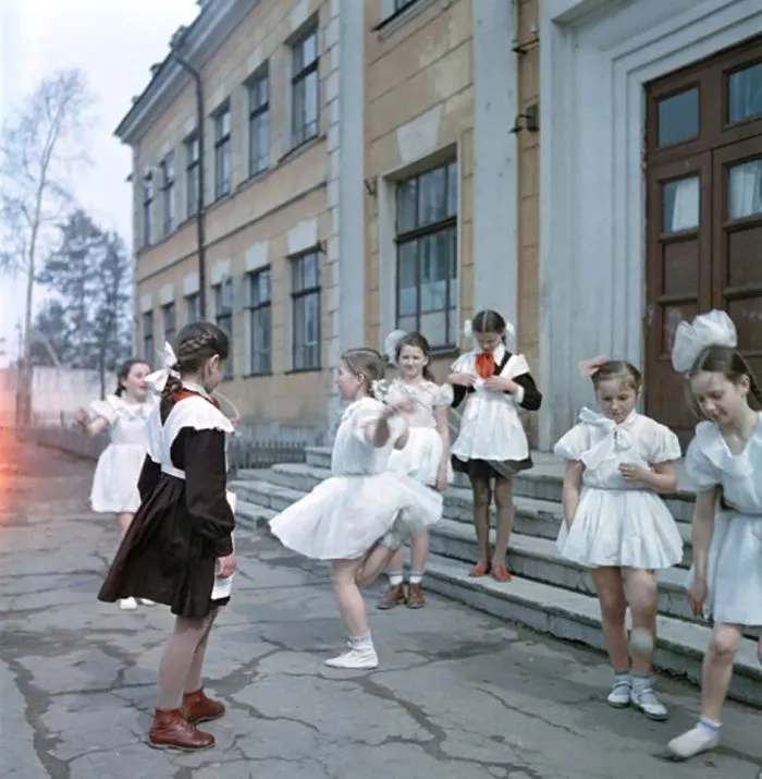 29. Советские дети 50-х. Школьницы на перемене. Фотограф С. Фридлянд