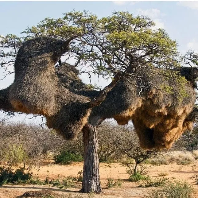 Эти гнёзда считаются самыми большими и самыми густонаселёнными домами на деревьях в мире. Некоторые из них могут весить до тонны. Можно с уверенностью сказать, что ткачи делают свою работу на совесть, потому что построить такое великолепное и прочное общежитие сможет далеко не каждый зверь.