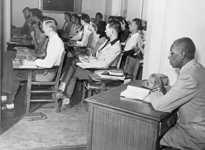 21. Джордж У. Маклорин в 1948 году, отделённый от остальной части его группы в университете