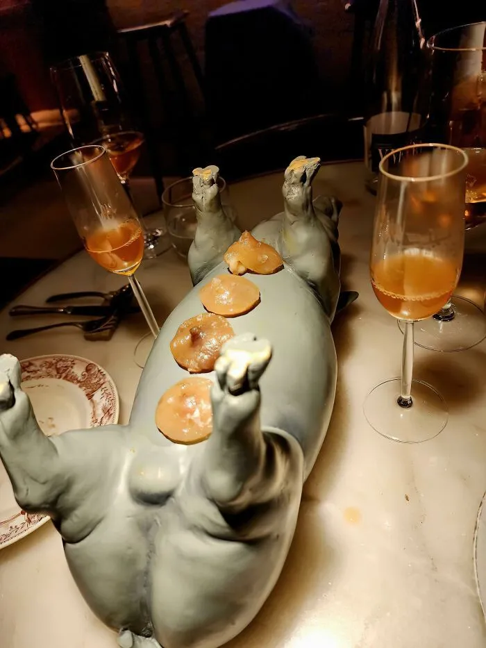 6. «Я думаю, необходимо добавить, что в бокалах — горячий свиной бульон, чтобы запивать эти свиные соски»