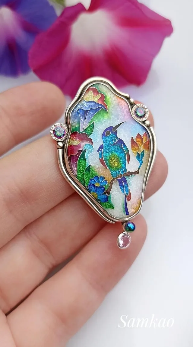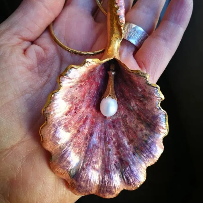 Подвеска моего отца. Аккуратно сделано вручную. Эмаль, медь, серебро и жемчуг
