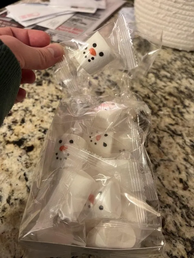 На Рождество я получил эту пачку зефира в виде милых снеговиков… упакованных в индивидуальную упаковку…