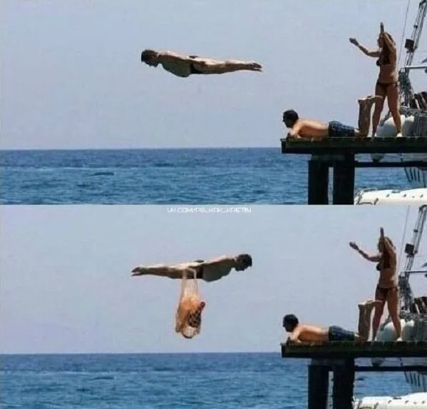 ну мужик на последней даже если штангу не уронит, ему всеравно выжить сложно будет, нужно очень чётко её сбросить и незадеть себе голову