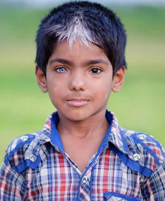 Из-за этого люди выглядят особенно, у них есть следующие отличительные черты: латеральное смещение внутреннего угла глаза, гетерохромия радужки, седая прядь надо лбом и врождённая тугоухость различной степени.
