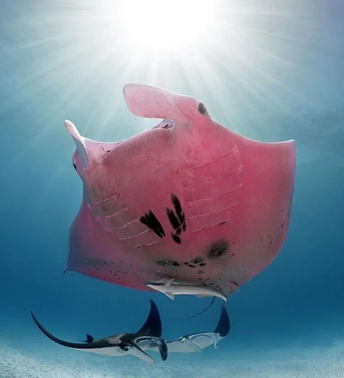 9. Дайвер по имени Кристиан Лэйн наткнулся на великолепного розового ската манту
