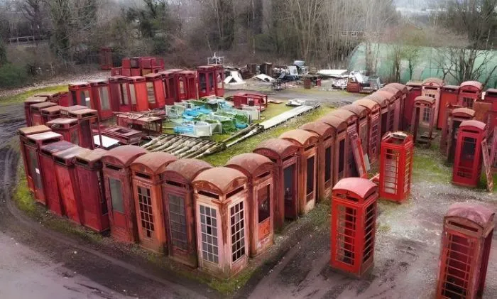 Невероятное «кладбище» британских красных телефонных будок, спрятанное рядом с железнодорожной линией в графстве Суррей
