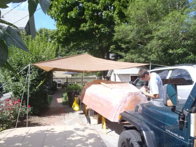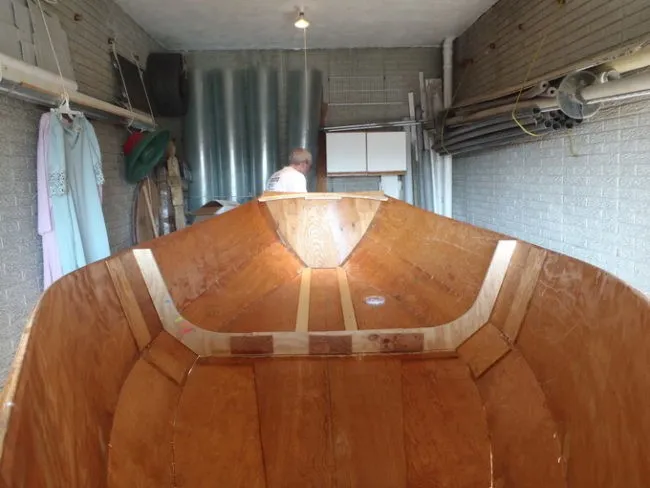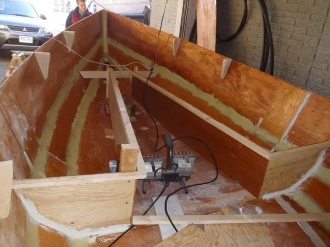 К тому времени, когда они начали облицовывать лодку стекловолокном, с начала их работы прошло 4 года: