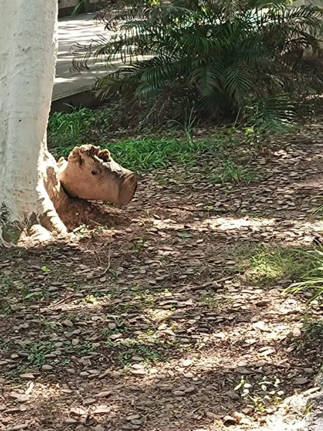 Я ехал на велосипеде в свой офис, когда мне показалось, что я увидел маленького бегемота, выглядывающего из-за дерева