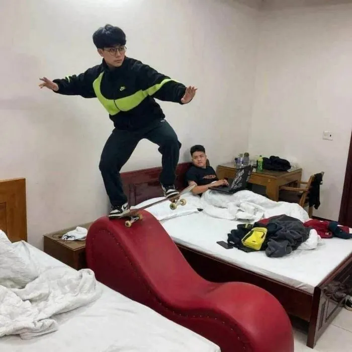 кореец пытается съехать на скейте с диванчика для секса. мы такой хотели с женой купить.