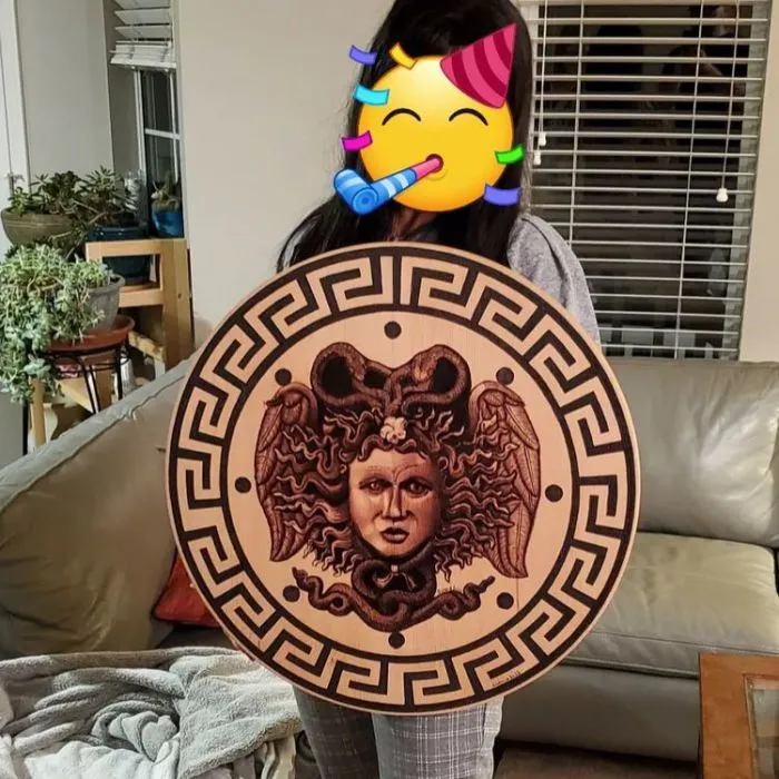 55-сантиметровый щит из ольхи, наподобие того, что Афина несла в бой. «Только самое лучшее для моей миссис!»