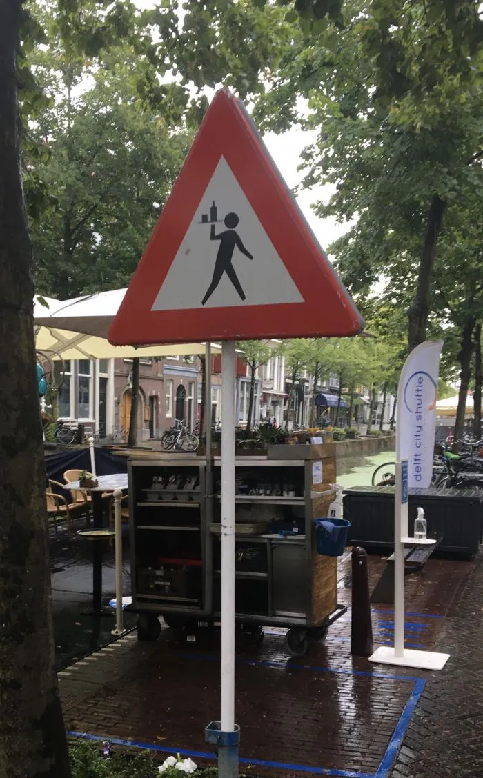 22. Дорожный знак в Нидерландах предупреждающий водителей остерегаться официанток, переходящих дорогу