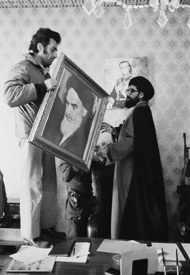 4. Исламские революционеры заменяют портрет шаха портретом аятоллы Хомейни во дворце Ниаваран, Тегеран, 1979 год
