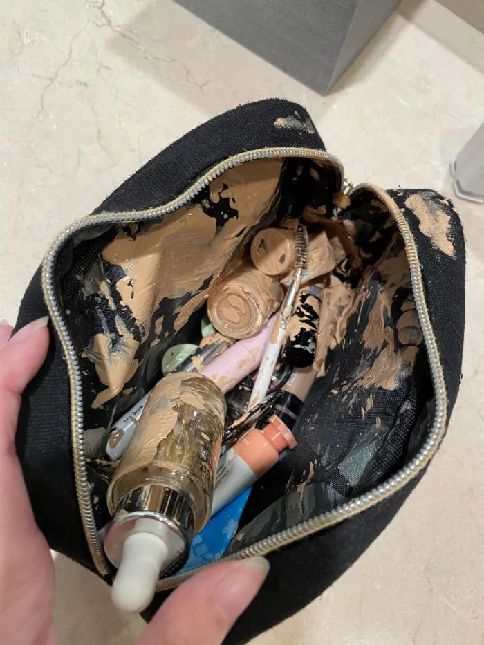 17. Папа сел на мою косметичку и раздавил тональный крем