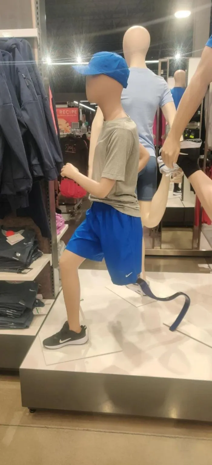 14. Манекен с протезом ноги в магазине спортивной одежды