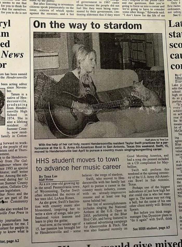 20. «В нашей библиотеке выставлен номер местной газеты, в котором предсказывают, что недавно переехавшая в город школьница, Тейлор Свифт, станет звездой»
