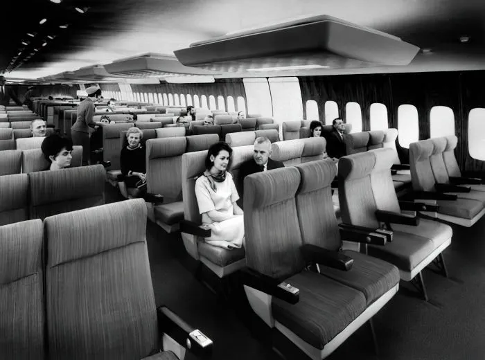 2. Так в 1960-х годах выглядел эконом-класс пассажирского самолета американский авиалиний