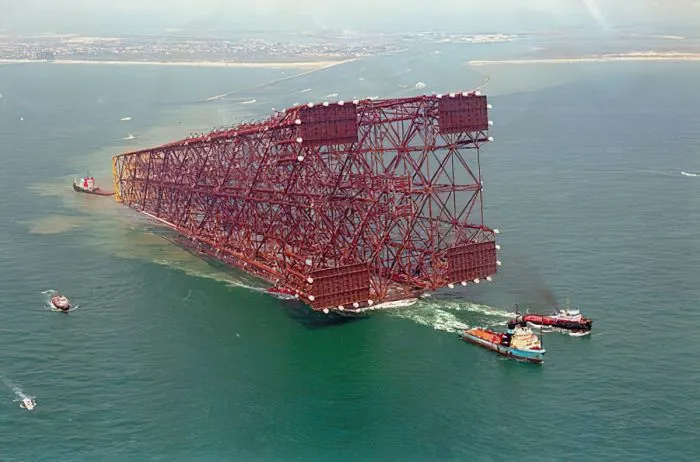 7. Так морская нефтяная платформа транспортируется к месту её установки