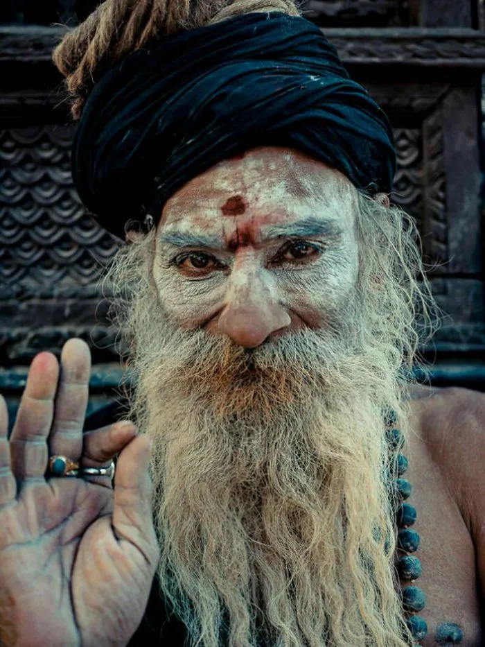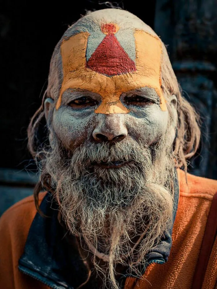 Обычно садху в одеждах цвета охры, а на их лицах — рисунки