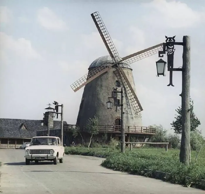 32. Мельница-ресторан по дороге из Паневежиса в Шауляй на повороте в городок Шедува, 1970. Мельница построена в 1905 году. С 1967 года в ней на трех этажах расположился ресторан