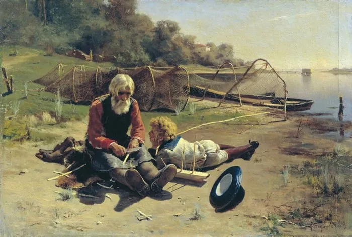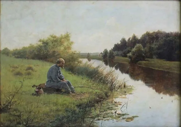 «Рыбак на берегу реки», 1889 год, холст, масло, Таганрогский художественный музей