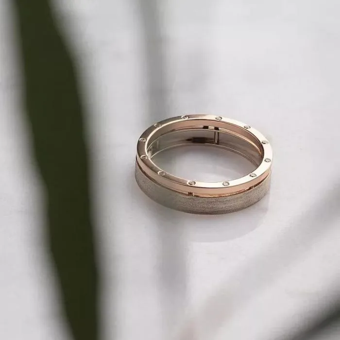 Символично и эффектно смотрятся помолвочные колечки из нескольких цветов золота. Сочетание контрастных элементов – словно двое влюблённых, что решили стать одним целым. Такое украшение станет палочкой-выручалочкой в ювелирном гардеробе вашей любимой. Оно с лёгкостью “подружит” в одном комплекте изделия, выполненные из разных сплавов.
