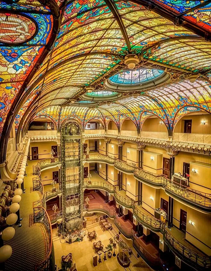 23. Стеклянный потолок Тиффани, гранд-отель Сьюдад-де-Мексико. Ар-нуво, построено между 1895 и 1899 годами