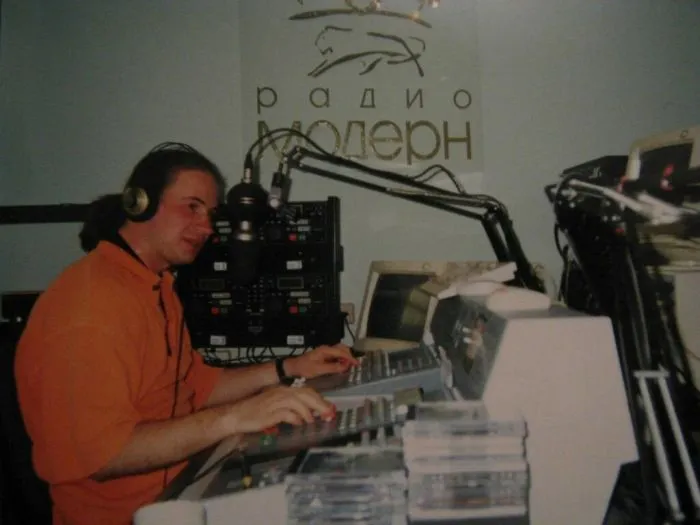 16. Геннадий Бачинский ведёт ночной эфир на радио «Модерн». Санкт-Петербург, 1997 год.