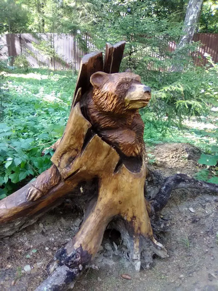 Глупый как пень, глухой как пень, стоит, как верста, как надолба, как пень. Словом, это слово – наземная часть дерева, оставшаяся после его спиливания или падения, используется преимущественно в пренебрежительном ключе. Между тем как при желании пенёк можно превратить в шедевр.
