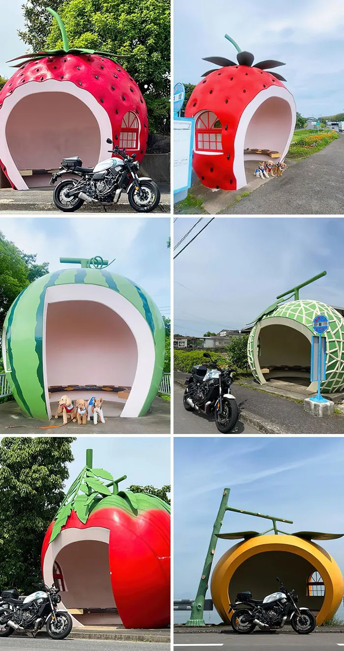 6. «Вкусные» автобусные остановки в Японии в виде арбуза, лимона, клубники, помидора и мускусной дыни