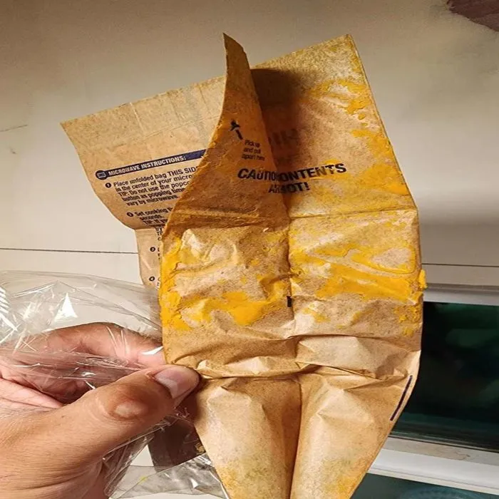 3. «Дополнительное масло к попкорну нанесено на упаковку. Дырок нет, машина тупо нанесла масло прямо на пакет, а потом запечатала его в пластик»