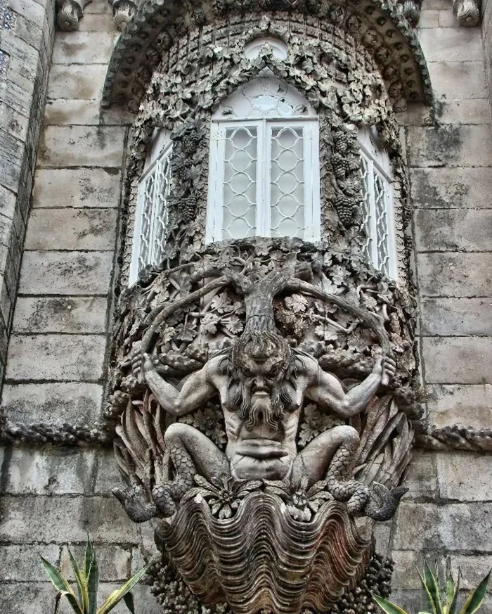 3. Эркер с Тритоном, греческим морским богом во дворце Пена в Сан-Педро-де-Пенаферрим (муниципалитет Синтра, Португальская Ривьера)