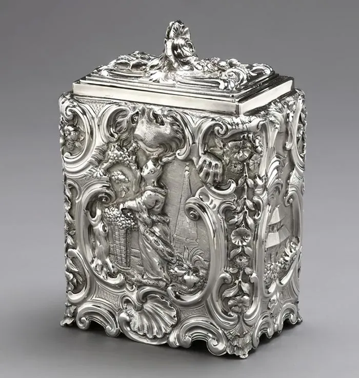 21. Серебряный контейнер для хранения чая или сахара, Англия, ок. 1752-1753 гг.