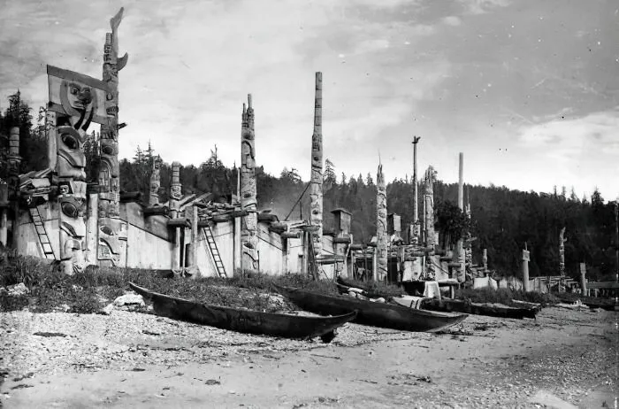 9. Лес тотемных столбов, созданный народом хайда в Скидегейте, Британская Колумбия. 1878 год